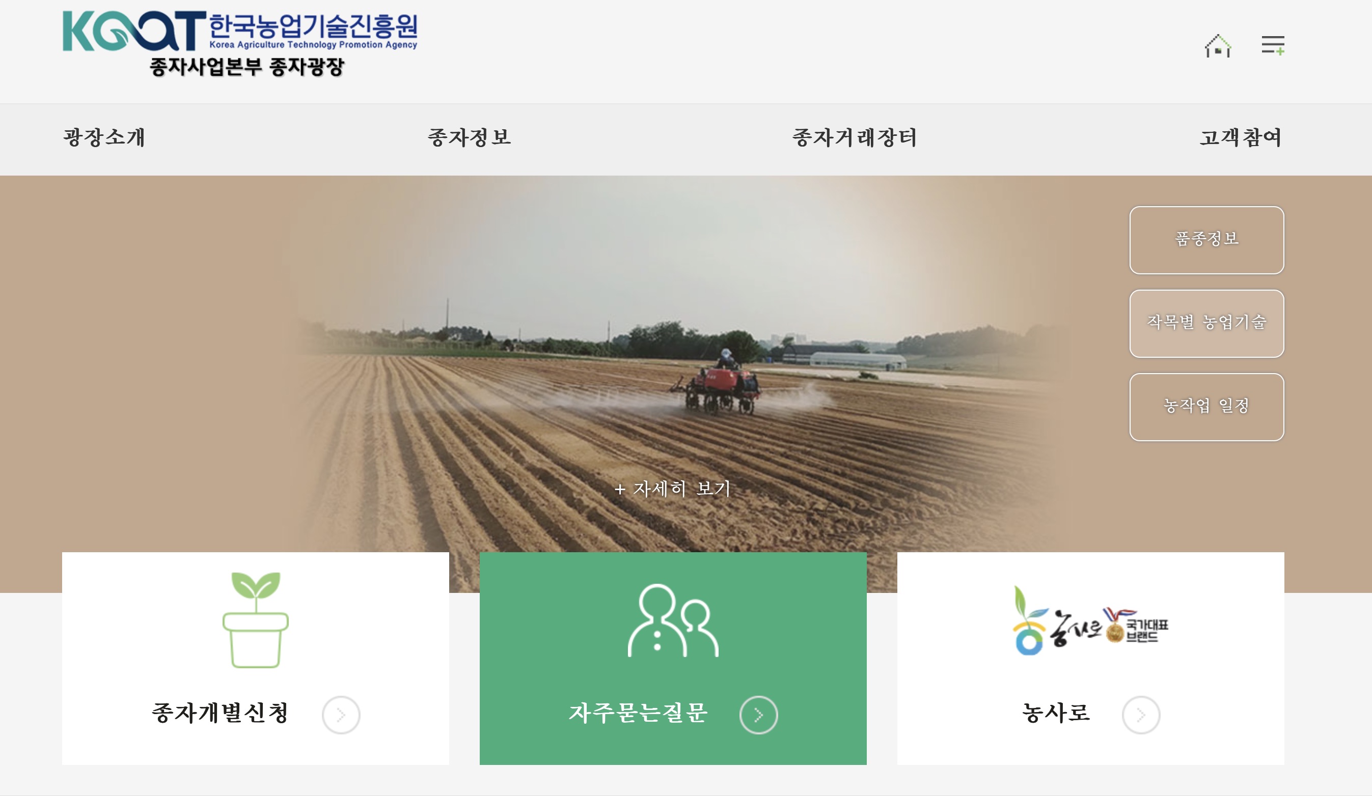 종자사업본부 종자광장 홈페이지